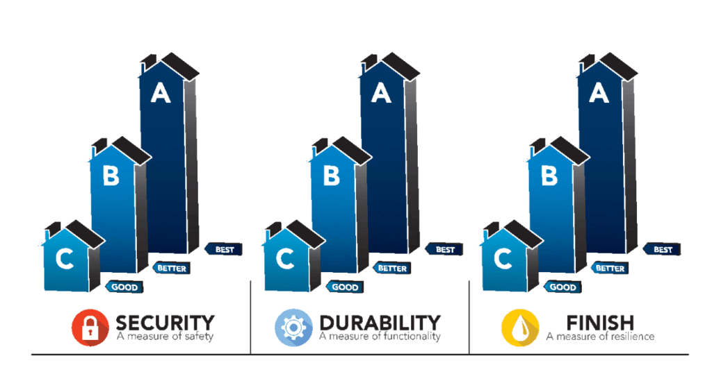 BHMA Rating Definition | Security Rating | Durability Rating | Finish Rating | BHMA AAA vs ANSI Grade 1