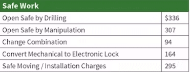 | Drilling and Replacing a Safe Lock | $50-100 depending on the lock type |
