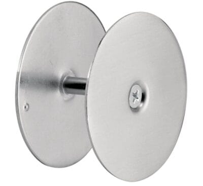Door hole cover plates cover the hole on both sides of the door by installing a flat plate over each side. They are held together by a connector bolt and cap (there is a screw that screws into a receiving cylinder). The cap side is smooth; be sure to install this with the connector bolt on the inside of the door so it cannot be removed from the outside.