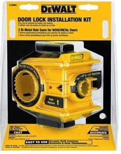 For fresh installation of door hardware. Our locksmiths like the Dewalt installation kit at Home Depot. It works well on wood and steel doors.