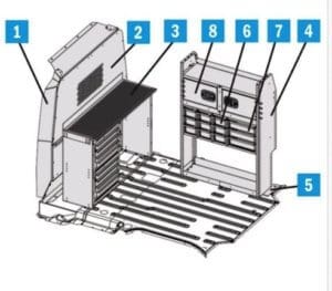 Outfitting your van is a personal preference. We recommend a work space (countertop) and as much storage as you can fit into it. You’ll need your van measurements and you can pick up much of what you need online.